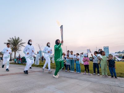 ثم توجهت المسيرة إلى بحيرة البط بكورنيش الخبر الشمالي، حيث حمل الشعلة عبدالعزيز الدريعي، لاعب الدراجات الهوائية والذي حقق 3 ميداليات ذهبية وفضيتين في البطولة العربية للمضمار عام 2022، و3 ميداليات ذهبية في البطولة العربية المجمعة 2021، واختتمت المسيرة جولتها في ساحة جوار، وحمل الشعلة في الممشى اللاعب الأولمبي السعودي على نور الخضراوي لاعب تنس الطاولة وصاحب المركز الأول في تصفيات غرب آسيا المؤهلة لأولمبياد طوكيو 2020، وصاحب المركز الأول في دورة الألعاب العربية في الجزائر عام 2023.
