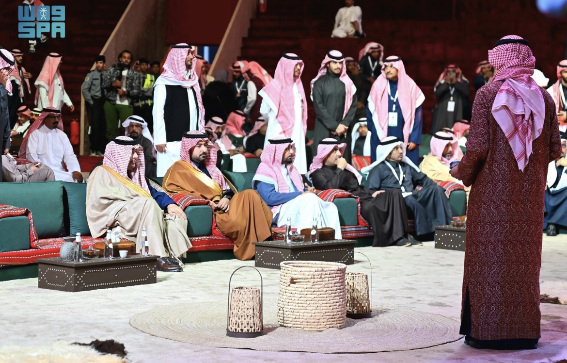 دشّن رئيس مجلس إدارة نادي الإبل فهد بن فلاح بن حثلين فعالية “حنّا لها” لشعر المحاورة في مهرجان الملك عبد العزيز للإبل بسخته الثامنة وذلك خلال حفلٍ تضمّن أوبريت محاورة وطني شارك فيه 16 شاعرًا من شعراء المحاورة ورحب رئيس مجلس نادي الإبل في بداية الحفل بالشعراء المشاركين والمكرمين وممثليهم بالنسخة الثامنة من المهرجان الذي يسعى النادي من خلاله إلى ربط الماضي بالحاضر وتوثيقه تاريخياً ليكون قصة تُروى لمختلف الشعوب ، مؤكداً أن نادي الإبل أسِس لحفظ الثقافة السعودية الخالصة ، مُنطلقاً من محبّة أهل الإبل للحياة ومن الاعتزاز الشديد بما يحملون من عراقة حضارية لا تغيب ولا تندثر .
