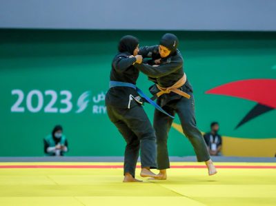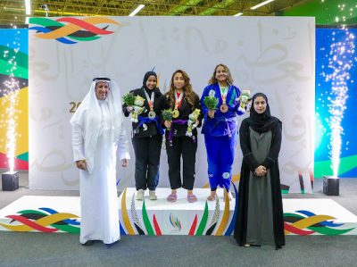 توجت الأستاذة أضواء العريفي مساعد وزير الرياضة لشؤون الرياضة، اللاعبة العنود الضفيان بذهبية وزن تحت 60 كجم، في منافسات الجوجيتسو التي اختتمت اليوم الأربعاء في الأرينا الرياضية بجامعة الملك سعود، فيما حصلت لاما المدني على الميدالية الفضية، ونالت مرام محمد ونورة الدخيل الميدالية البرونزية.