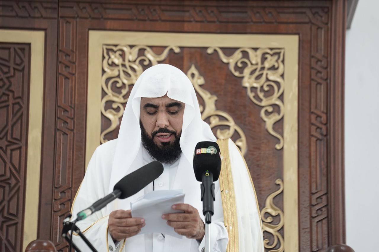 وسط أجواء روحانية مفعمة بالإيمان اصطفت حشودٌ هائلة من المصلين خلف فضيلة إمام المسجد الحرام الدكتور عبدالله بن عواد الجهني للاستماع لخطبة الجمعة وأداء الصلاة يوم أمس الأول في جامع الملك فيصل بوكوناكري في جمهورية غينيا، في افتتاح الجامع بعد انتهاء أعمال الترميم التي تمت بتمويل من حكومة المملكة العربية، وذلك ضمن برنامج زيارته الحالية لجمهورية غينيا الذي تنفذها وزارة الشؤون الإسلامية والدعوة والإرشاد.