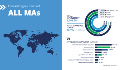ويُشير التقرير إلى أن 80% من استثمارات البرنامج (أي أكثر من 2.24 مليار دولار) في دورتي FIFA Forward 1.0 وFIFA Forward 2.0 حصلت عليها الاتحادات الوطنية الأعضاء بشكل مباشر، وهو ما يوفّر مساهمات أساسية لتمويل العمليات ذات الصلة بأنشطة التطوير الكروية التي تضطلع بها الاتحادات الوطنية، بالإضافة إلى تمكين هذه الاتحادات من الاستثمار في مشاريع محددة ذات أثر على المدى الطويل لتطوير الجانب الكروي.