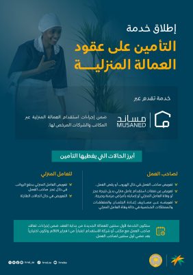 أعلنت وزارة الموارد البشرية والتنمية الاجتماعية عن إطلاق خدمة “التأمين على عقود العمالة المنزلية” للعمالة المنزلية الجديدة القادمة لأول مرة لصاحب العمل عبر منصة مساند وذلك اعتباراً من 1 فبراير 2024م وأوضحت الوزارة أن خدمة التأمين ستكون على عقود استقدام العمالة المنزلية لأول سنتين من بداية العقد ضمن إجراءات تعاقد صاحب العمل مع مكتب أو شركة الاستقدام ويكون التأمين بعد مضي سنتين اختياراً لصاحب العمل ، مشيرةً إلى أن الخدمة متاحة حالياً لعملاء مساند حيث قد سبق أطلقتها الوزارة اختياراً لعملائها منذ مطلع عام 2023م وقد بلغ عدد العملاء الذين اختاروا هذه الخدمة أكثر من (175) ألف عميل وأضافت أن خدمة التأمين تتيح تعويض صاحب العمل والعامل المنزلي في مجموعة من الحالات ابتداءً من تاريخ بدء العامل المنزلي للعمل كما تسهم خدمة التأمين على عقو د العمالة المنزلية في تحقيق العديد من المنافع لصاحب العمل مثل: تعويضه عن نفقات استقدام في حال التغيب أو الهروب أو الوفاة أو عجز العامل عن العمل أو إصابته بأمراض مزمنة تعيقه عن أداء عمله إضافة إلى تعويضه عن مصاريف إعادة الجثمان والمتعلقات والممتلكات الشخصية في حال وفاة العامل المنزلي كما تضمن الخدمة حفظ حقوق العامل المنزلي مثل: تعويض العامل في حال العجز الكلي الدائم أو العجز الجزئي الدائم الناتج عن حادث -لا سمح الله- وتعويضه في حال عدم التزام صاحب العمل بسداد الرواتب والمستحقات المالية نتيجة وفاة صاحب العمل أو عجزه الكلي الدائم أو عجزه الجزئي الدائم -لا سمح الله- وتأتي خدمة التأمين على عقود العمالة المنزلية تماشياً مع جهود الوزارة الساعية لتطوير قطاع الاستقدام وحماية حقوق العامل المنزلي وصاحب العمل حيث أطلقت الوزارة في وقت سابق برنامج حماية الأجور للعمالة المنزلية لحفظ حقوق أجور العمالة المنزلية في المملكة وبرنامج العقد الموحد في استقدام العمالة المنزلية ينص على وجود عقد موحد ملزم لطرفي العقد يحفظ الحقوق التعاقدية ويحدد الالتزامات على الطرفين بالإضافة إلى تحديد سقف أعلى لاستقدام العمالة المنزلية لعدد من الدول والعديد من الاتفاقيات المشتركة .