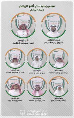 رجال ألمع : اعتمدت وزارة الرياضة رسمياً مجلس إدارة نادي ألمع الرياضي برئاسة فايع بن يحيى الحياني ؛ وضمت القائمة النهائية للمرشحين لرئاسة وعضوية مجلس إدارة نادي المع في الجمعية العمومية تعيين حسين بن محمد ال قاسم نائبا لرئيس مجلس إدارة النادي.