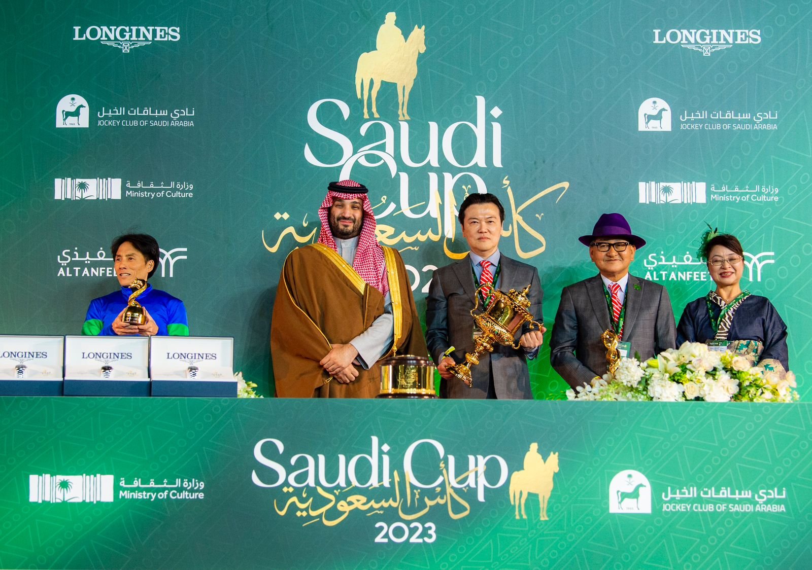 توج صاحب السمو الملكي الأمير عبدالعزيز بن تركي الفيصل وزير الرياضة، المكسيكي “سيرجيو بيريز” سائق فريق ريد بُل بجائزة سباق السعودية الكبرى  STC للفورمولا١، والتي أقيمت على حلبة كورنيش جدة، في حدثٍ رياضي عالمي آخر شهدته المملكة خلال شهر مارس من العام 2023م.