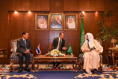 وأشاد معالي رئيس البرلمان بما سمعه ــ خلال لقائه ــ بمعالي الوزير الشيخ الدكتور عبداللطيف آل الشيخ حول تحقيق السلم والسلام والتعايش السلمي ونبذ الكراهية والعنف من خلال الجهود التي قامت بها وزارة الشؤون الإسلامية والدعوة والإرشاد في هذا المجال، مؤكداً أن لها تأثير كبيراً في العالم أجمع، ومشيراً لأهمية الاستفادة من خبرة المملكة العربية السعودية في هذا المجال… موجهاً الدعوة لمعالي الدكتور عبداللطيف آل الشيخ لزيارة مملكة تايلند.
