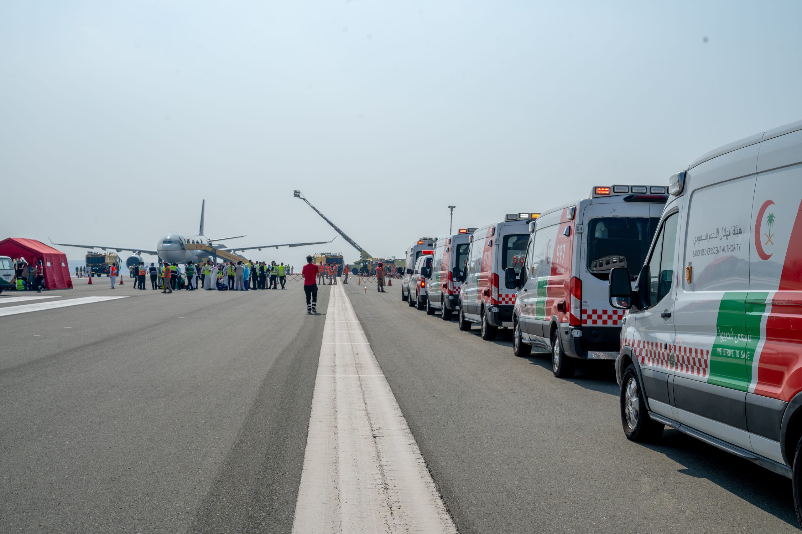 الهلال الاحمر السعودي بجدة يشارك في فرضية هبوط اظطراري لطائرة بمطار الملك عبدالعزيز الدولي بجدة بمشاركة الاسعاف الجوي وعربات الكوارث و١٣ فرقة اسعافية