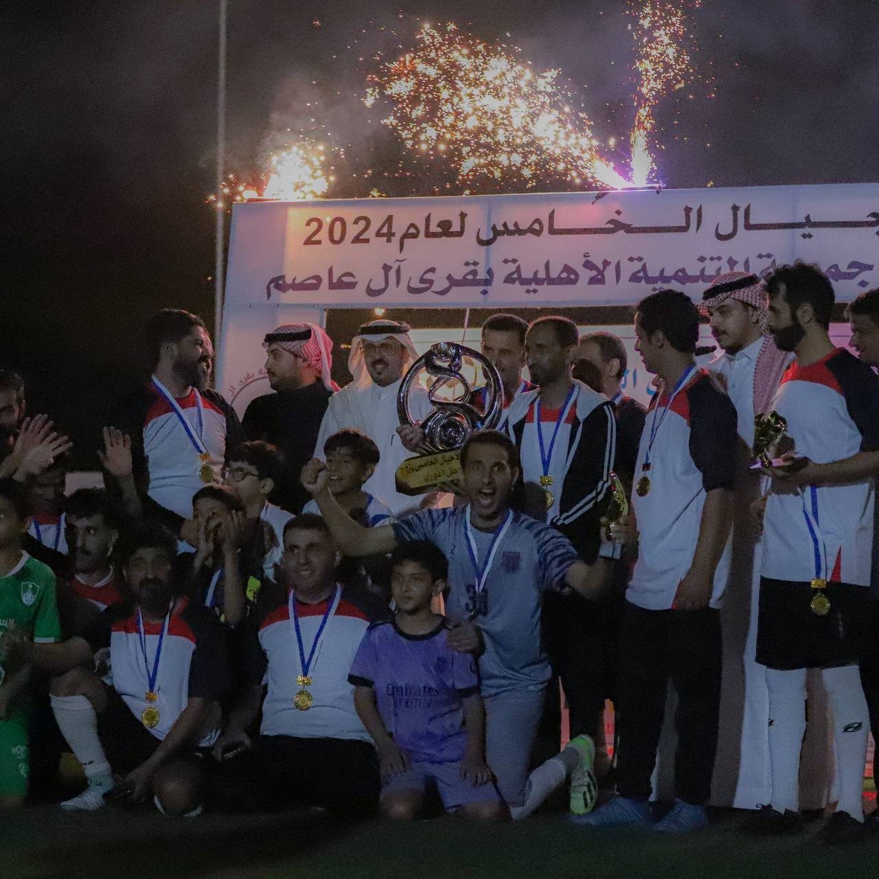 رجال ألمع : توج محافظ رجال المع الحسن بن عبدالخالق الحفظي يوم أمس وبحضور مدير الشؤون التنموية ناصر بن علي صالح ، فريق النخبة بطلاً لدوري الأجيال على كأس جمعية التنمية الأهليه بقرى آل عاصم في نسختها الخامسه : وذلك إثر فوزه في المباراة النهائية على نظيره فريق “اكسبو” بنتيجة ثلاثة أهداف دون مقابل ؛ حيث سجلت الأهداف على مدار الشوطين . وتسلم الكأس والميداليات الذهبيه فريق ” النخبه ” فيما تسلم الميداليات الفضية فريق ” اكسبو ” ؛ وحصل على لقب هداف الدورة علي فايع من فريق الرجاء ؛ وأفضل لاعب في المباراه إبراهيم أحمد من النخبه ؛ وأفضل حارس سلطان أحمد من “النخبه” .