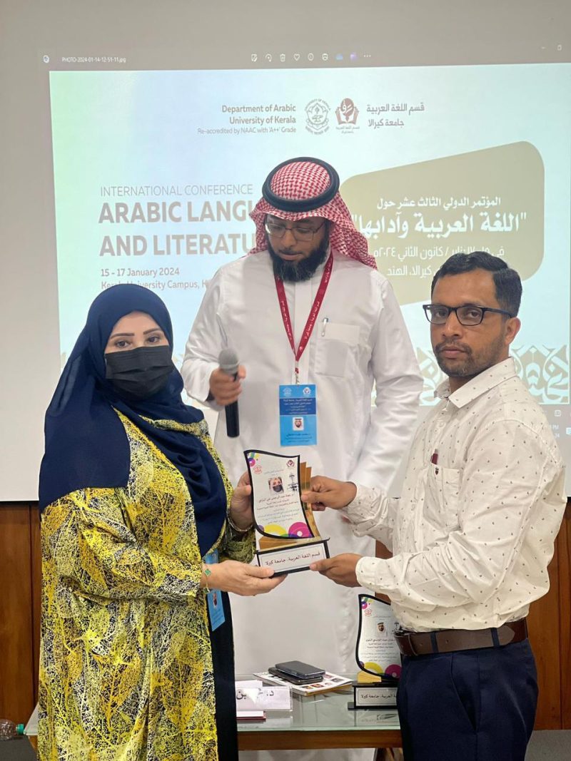 استعرضت الأستاذة الدكتورة نجاة عبد الرحمن اليازجي المشرفة العامة على وحدة التوعية الفكرية وعضو هيئة التدريس بجامعة الأعمال والتكنولوجيا، جهود المملكة للحفاظ على اللغة العربية، أمام 35 باحثًا من مختلف أنحاء العالم، خلال المؤتمر الدولي الثالث عشر للغة العربية وآدابها، والذي جرت فعالياته على مدار ثلاثة أيام بجامعة كيرالا الهندية، بحضور كوكبة من العلماء والخبراء السعوديين وغيرهم من شتى بقاع العالم.
