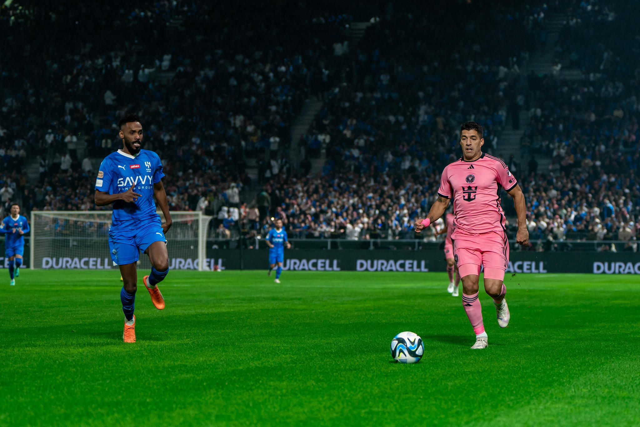 الهلال استحوذ على مجريات الشوط الأول وتمكن من التقدم في الدقيقة 10 عن طريق مهاجمه ميتروفيتش عندما سدد كرة زاحفة على يسار الحارس من داخل منطقة الجزاء ولم يستفق ميسي ورفاقه من صدمة الهدف حتى عزز عبدالله الحمدان بعدها بدقيقتين فقط النتيجة للهلال بهدف ثان من تسديدة من خارج منطقة الجزاء مما أجبر لاعبي ميامي للخروج من مناطقهم ومحاولة استغلال دفاع الهلال الذي وضح عليه عدم الانسجام ومع مرور الوقت تمكن سواريز من تقليص الفارق بتسجيله هدف ميامي الأول بعد خطأ دفاعي من حجفلي عندما أعاد له الكرة داخل منطقة الجزاء في الدقيقة 34 ولكن الهلال عاد مجدداً ووسع الفارق برأسية ميشيل عند الدقيقة 44 لينتهي الشوط الأول بتقدم الهلال بنتيجة 3-1