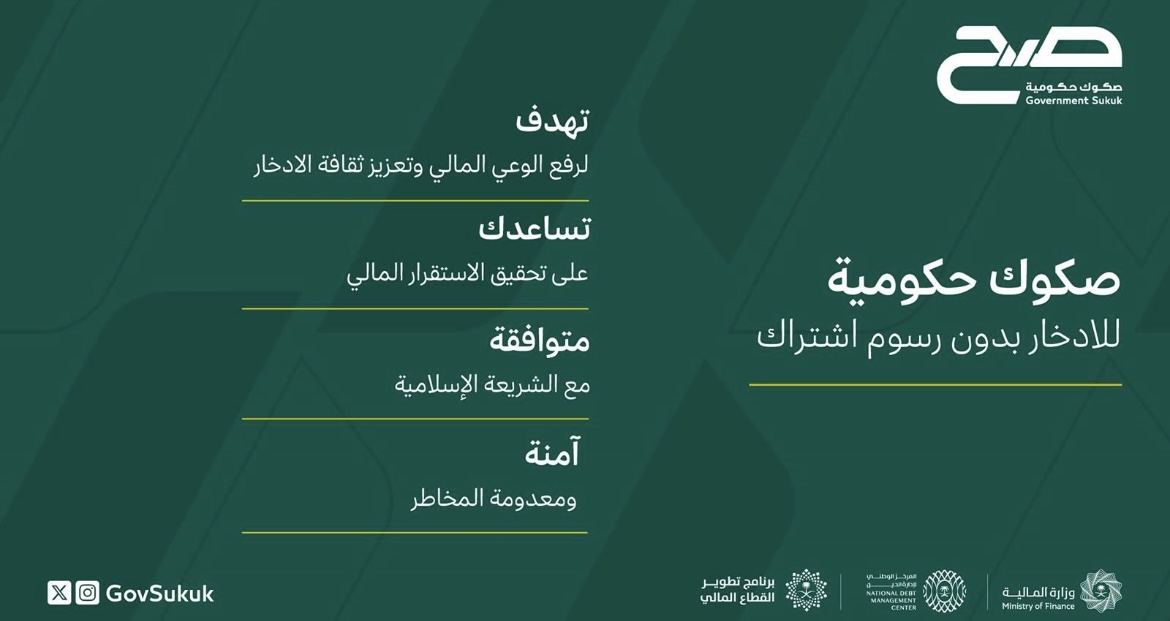 تعتزم وزارة المالية والمركز الوطني لإدارة الدين إطلاق أول منتج ادخاري مخصص للأفراد ومدعوم من الحكومة وذلك تحت اسم (صح) المشتق من الحروف الأولى لعبارة (صكوك حكومية) وأوضح معالي رئيس اللجنة التوجيهية بوزارة المالية الأستاذ عبدالعزيز الفريح أن إطلاق منتج “صح” يأتي ضمن مبادرات برنامج تطوير القطاع المالي (أحد برامج رؤية المملكة 2030) الهادفة إلى رفع معدلات الادخار بين الأفراد من خلال تحفيزهم على استقطاع جزء من دخلهم بشكل دوري وتخصيصه للادخار إضافة إلى زيادة المعروض من المنتجات الادخارية وإثراء الثقافة المالية والتوعية بأهمية الادخار وفوائده للتخطيط لأهداف مستقبلية ، من جانبه أفاد الرئيس التنفيذي للمركز الوطني لإدارة الدين هاني المديني أن هذه الصكوك تندرج ضمن برنامج الصكوك المحلية المقوّمة بالريال السعودي التي ستطرح بشكل شهري بحسب التقويم المعلن للإصدارات الخاصة بـمنتج “صح” مبينًا أن هذه المبادرة تمثل حافزاَ للقطاع الخاص للتعاون والمشاركة في تطوير وإطلاق عدد من المنتجات الادخارية لأهداف محددة لفئات مختلفة من الأفراد سواء كانت عن طريق البنوك أو مديري الصناديق أو شركات التقنية المالية وغيرها ويوفر المنتج الادخاري المتوافق مع الشريعة الإسلامية “صح” عوائد مجزية وسيطرح عبر القنوات الرقمية لعدد من المؤسسات المالية وهي: شركة الأهلي المالية وشركة الجزيرة للأسواق المالية وشركة الإنماء للاستثمار وشركة الأول للاستثمار وشركة الراجحي المالية ومن المقرر أن تبدأ فترة الاشتراك في أول إصدار من منتج “صح” في شهر فبراير 2024م حيث سيطرح في اليوم الرابع من الشهر وحتى اليوم السادس منه ويمكن الاطلاع على تفاصيل المنتج والتقويم الزمني لإصداراته عبر الرابط التالي: https://ndmc.gov.sa/gov-sukuk/Pages/default.aspx