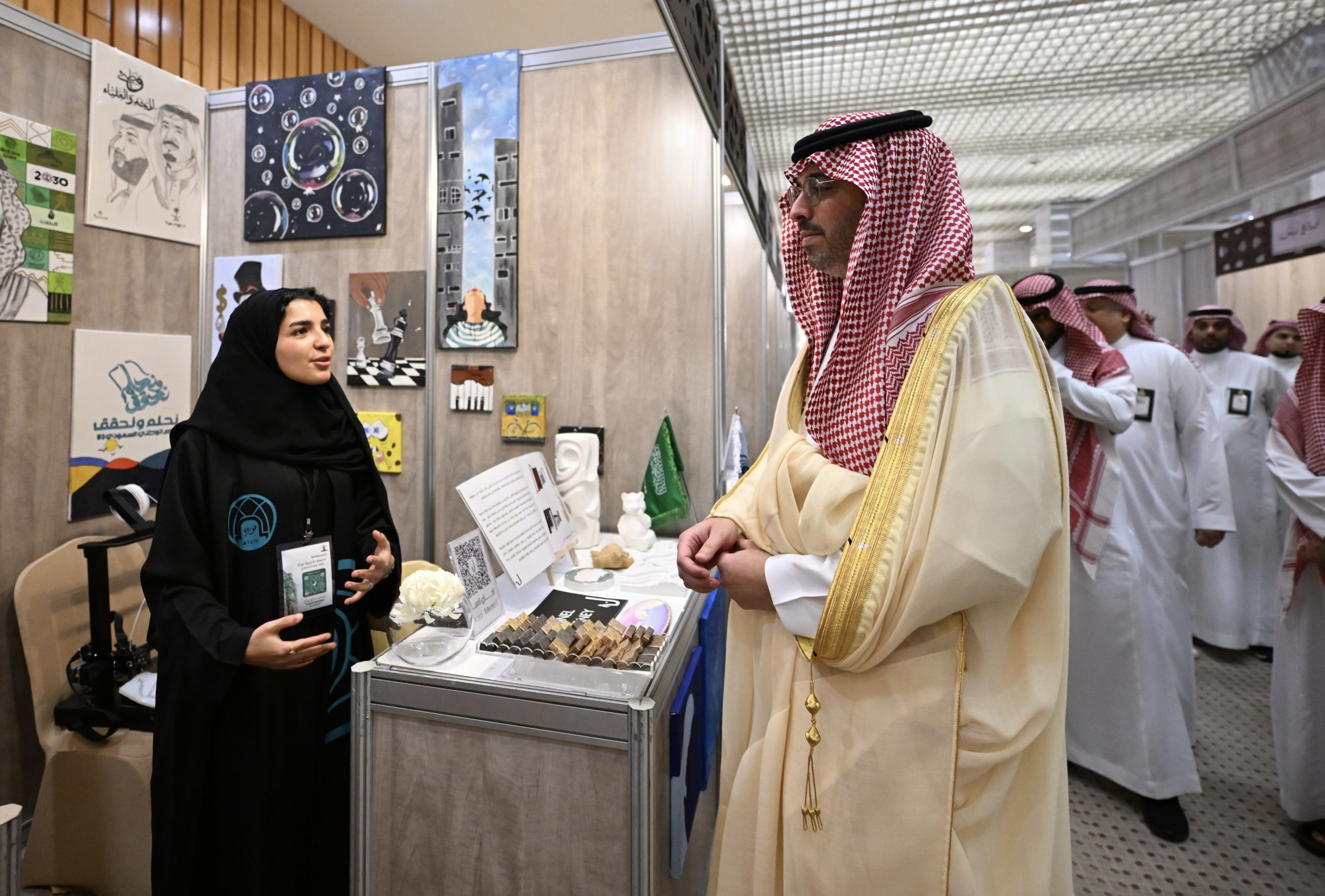 وتجوّل سموّه في المعرض الذي يضم 114 مشروعاً في أقسام متنوعة، بمشاركة 150 طالباً وطالبة من رواد المشاريع الصغيرة الراغبين في الانطلاق إلى سوق العمل من مختلف الجامعات السعودية، لإثراء المنتجات المحلية بصناعة وطنية عالية الجودة، ورفع مستوى مساهمة المنشآت الصغيرة والمتوسطة في الناتج المحلي الإجمالي للمملكة.