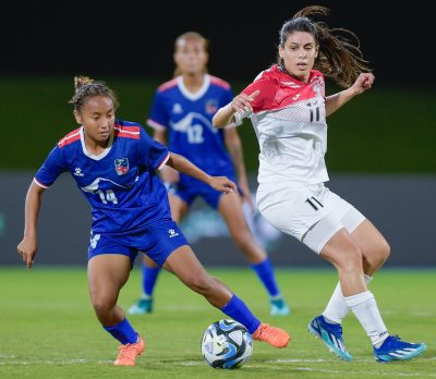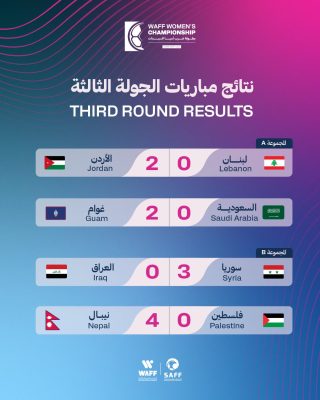 بدوره، فاز منتخب نيبال على المنتخب الفلسطيني ٤-٠ (الشوط الأول ١-٠). سجلت الأهداف سابيترا بهانداري في الدقيقتين ٤١ و٧٩، ريخا بودل (٦٠) وغيتا رانا (٧+٩٠ عبر ركلة جزاء)، وتصدّر المنتخب النيبالي جدول الترتيب بـ ٩ نقاط، يليه فلسطين ثانيًا (٦ نقاط)، والمنتخب السوري ثالثاً (٣ نقاط) والعراق في المركز الرابع من دون أي نقطة.