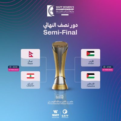 وستقام على ستاد الأمير عبدالله الفيصل يوم ٢٧ شباط/ فبراير ٢٠٢٤ مباراتا الدور قبل النهائي بين الأردن وفلسطين عند الساعة الخامسة مساءً بتوقيت السعودية، وبين نيبال ولبنان عند الساعة الثامنة مساءً، ويتأهل الفريقان الفائزان من مباراتي هذا الدور إلى المباراة النهائية المقررة يوم ٢٩ شباط/ فبراير الجاري على ستاد الأمير عبدالله الفيصل أيضاً.