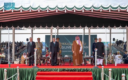 وكان سموه قد شهد بميدان العرض العسكري في العاصمة الباكستانية إسلام آباد، مراسم الاحتفال بيوم باكستان بصفتها ضيف شرف لهذا الاحتفال، واطلع على العرض العسكري والفعاليات المصاحبة للاحتفال، بحضور فخامة رئيس جمهورية باكستان الإسلامية، ودولة رئيس وزراء جمهورية باكستان الإسلامية، ومعالي وزير الدفاع بجمهورية باكستان الإسلامية.