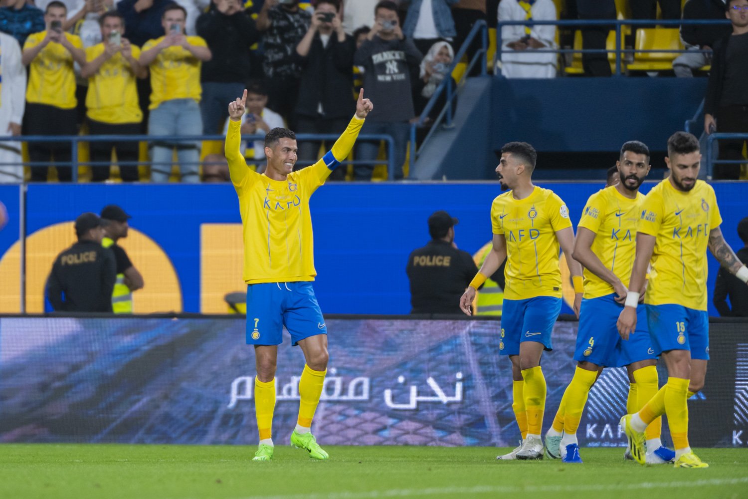 وافتتح خماسية النصر أوتافيو في الدقيقة (20)، قبل أن يضيف عبد الرحمن غريب الهدف الثاني في الوقت بدل الضائع من الشوط الأول ليأتي الدور على الهداف كريستيانو رونالدو الذي تمكن من تسجيل هاتريك في الدقائق (65 و67 و87)، بينما أحرز هدف الطائي فيرجيل ميسيدان في الدقيقة (22)