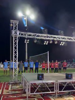 وتم تكريم حكام اللقاء واللاعبين والمعلقين وتتويج الفرق الفائزة بكأس بطولتي الطائرة والتنس.