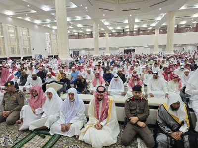 المجاردة : تقدّم محافظ المجاردة ناصر بن مفرح عسيري جموع المصلين في صلاة عيد الفطر المبارك للعام ١٤٤٥ هـ بجامع الملك عبدالعزيز بمحافظة المجاردة وبحضور عدد من مدراء الإدارات الحكومية.