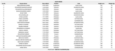 وسوف يعتمد منتخب السعودية حامل اللقب، على المهاجم المميز عبد الله رديف الذي يقود الخط الأمامي، بينما يقدم أيمن يحيى أفضل لاعب في كأس آسيا تحت 23 عاماً 2022 الدعم المطلوب عبر الأطراف.