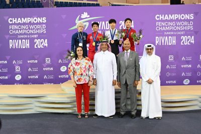 فيما توج عبدالكريم الشملان رئيس الاتحاد الكويتي للمبارزة الفائزات لسلاح الشيش تحت 17 عام، حيث حصدت الامريكية ليو جلين الميدالية الذهبية، بعد فوزها على فوفلو بوبا التي نالت الفضية، فيما ظفرت البولندية كوس نتازيا على البرونزية ونالت الكندية زيهانق زيلينا البرونزية والمركز الثالث المكرر.
