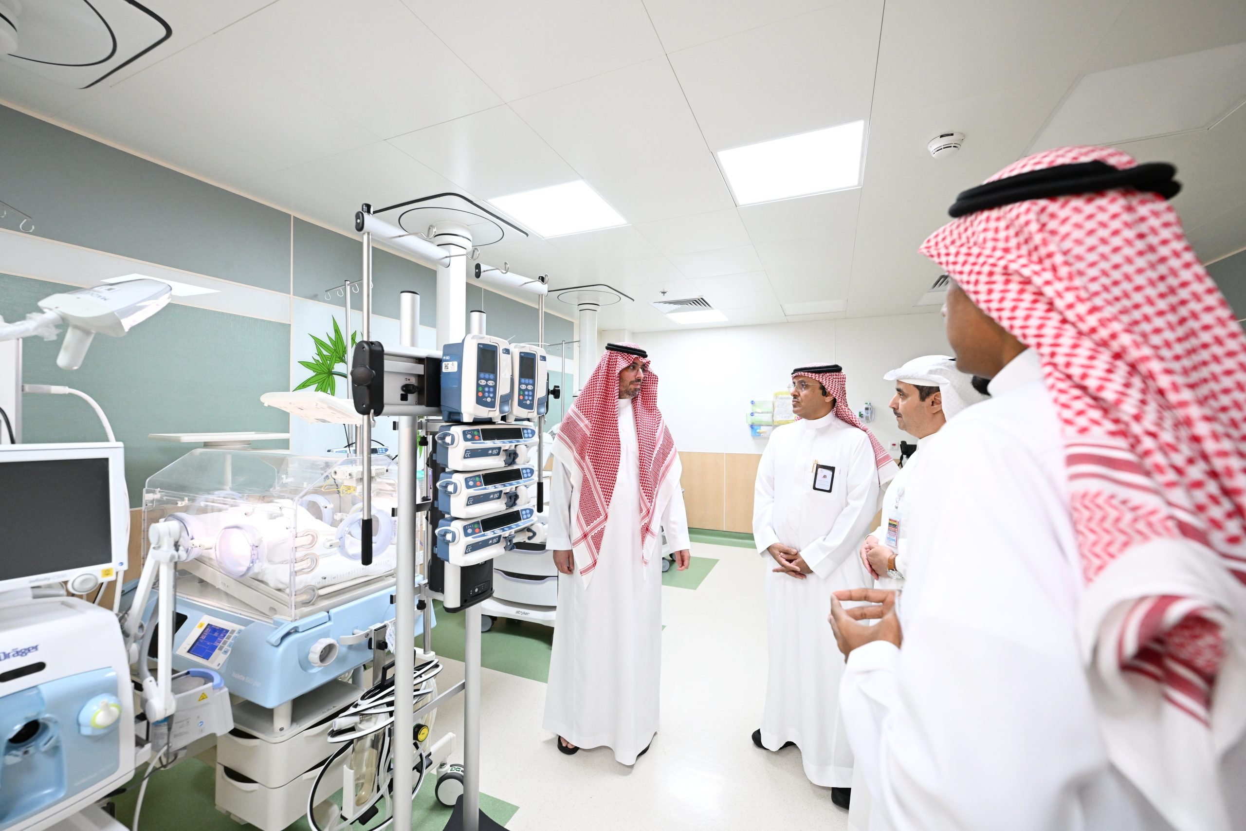 وتجول سموّه في قسم الطوارئ ، واطلع على الإمكانات المتوفرة فيه ، ثم انتقل إلى العناية المركزة للأطفال حديثي الولادة والعناية المركزة للأطفال ، كما تفقد قسم العيادات التخصصية في المستشفى.