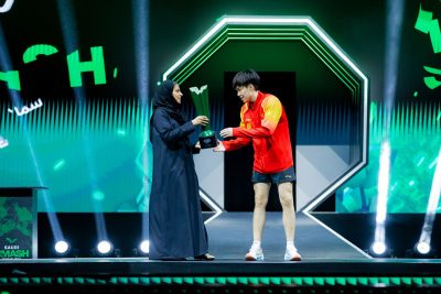 وتوّجت الأستاذة أضواء العريفي، مساعد وزير الرياضة لشؤون الرياضة، اللاعب الصيني “شوكين وانغ” المصنَّف الأول عالميًّا، بلقب فئة فردي الرجال، بعد فوزه على اللاعب الألماني “باتريك فرانزيسكا” المصنَّف الـ16عالميًّا بنتيجة 4-2، حيث أصبح وانغ بذلك أول لاعب ينجح في تحقيق 3 ألقاب في نفس البطولة، ضمن جراند سماش (فردي وزوجي الرجال، والزوجي المختلط).