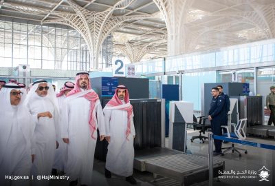 تفقد صاحب السمو الملكي الأمير سلمان بن سلطان بن عبد العزيز آل سعود أمير منطقة المدينة المنورة رئيس لجنة الحج والزيارة بالمنطقة – حفظه الله – مطار الأمير محمد بن عبد العزيز للوقوف على استعدادات استقبال الحجاج لموسم حج 1445 هـ/ 2024 م ، كما زار سمو الأمير، في إطار جولاته الميدانية محطة قطار الحرمين السريع بالمدينة للوقوف على استعدادات وترتيبات نقل وتفويج ضيوف الرحمن لموسم 1445 هـ / 2024 م ، تأتي تلك الجولات ضمن خطة المتابعة الميدانية من أمير منطقة المدينة المنورة للوقوف على كافة ترتيبات استقبال ونقل ضيوف الرحمن من وإلى المدينة المنورة خلال فترة أداء المناسك في موسم الحج .