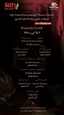 مونودراما امرأة في ورطة مسرحية مأخوذة عن نص عالمي لداريو فو وفرانكا راما يظهرها طاقم العمل بشكل مختلف من خلال إعدادها بتصور فني جديد.