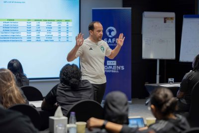 وأدار الورشة لويس كورتيس، المدير الفني للمنتخب السعودي للسيدات. كما استضافت الورشة عالية الرشيد، رئيس قسم كرة القدم النسائية في الاتحاد الآسيوي لكرة القدم، ونخبة من خبراء كرة القدم النسائية الدوليين ومسؤولين بارزين في CAF، بما في ذلك مدير التطوير ورئيس كرة القدم النسائية ومسؤول كرة القدم النسائية.