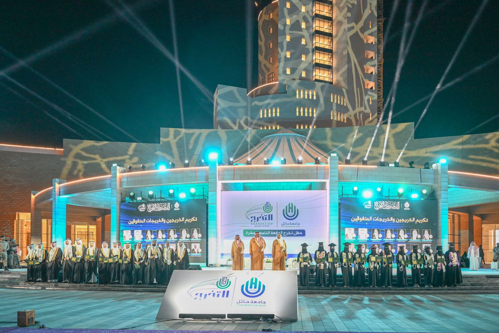 رعى صاحب السمو الملكي الأمير عبدالعزيز بن سعد بن عبدالعزيز أمير منطقة حائل مساء أمس الأربعاء، حفل تخريج 7234 طالباً وطالبة بجامعة حائل، يمثلون الدفعة التاسعة عشرة للمتوقع تخرجهم من مختلف الكليات والتخصصات لمراحل دبلوم الكلية التطبيقية والبكالوريوسِ، والدفعة الحادية عشرة لطلبة الماجستير، إذ ينتسب الخريجون في جميع المراحل إلى 115 برنامجاً أكاديمياً، بحضور صاحب السمو الملكي الأمير فيصل بن فهد بن مقرن بن عبدالعزيز نائب أمير منطقة حائل، ووكيل إمارة المنطقة عادل بن صالح آل الشيخ، وذلك بالمدينة الجامعية.