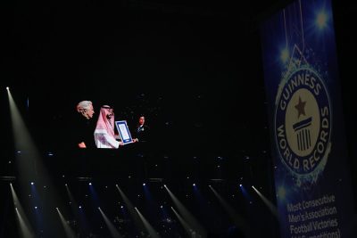 وقبل بدء مراسم حفل التتويج، قامت موسوعة «غينيس» للأرقام القياسية بمنح الهلال شهادة عدد الانتصارات الأعلى المتتالية في تاريخ كرة القدم التي حققها الأزرق العاصمي هذا الموسم وبلغ 34 انتصار على التوالي .