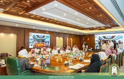 كما ناقش “آل الشيخ” خلال الاجتماع أبرز ما تحقق من مشاريع الوزارة في المشاعر المقدسة خلال موسم حج هذا العام 1445هـ حيث بلغت قيمتها (13.439.228) مليون ريال ومنها مشروع تهيئة وتلطيف الساحة الخلفية بمسجد نمرة بمشعر عرفات ومشروع تحديث وتطوير أنظمة التكييف في مسجد حجاج البر بمشعر منى ومشروع العزل المائي والحراري على كامل سطح جامع (أم المؤمنين عائشة ـ رضي الله عنها) ومشروع توريد وتركيب كاميرات ساحات الوضوء والساحات الخارجية للجامع بعدد (51 كاميرا) وكذلك مشروع استبدال وحدات التكييف في ميقات الجحفة برابغ والتي تأتي استكمالاً للمشروعات خلال الستة الأعوام السابقة ليكون إجمالي قيمتها (217,643,286) مليون ريال وبذلك تصبح مساجد المشاعر المقدسة ومسجدي الحل مهيئة بنظام تكييف حديث وفق أعلى المواصفات ليسهم في تأمين أجواء صحية وباردة لحجاج بيت الله الحرم وشموليتها بأعمال التشغيل والصيانة والنظافة ليؤدي الحجاج نسكهم بكل يسر وسهولة تحقيقاً لرؤى وتطلعات القيادة الرشيدة ــ حفظهما الله ـــ كما اطلع معاليه على الخدمات التقنية المقدمة خلال موسم الحج حيث تعمل الوزارة على تفعيل التقنية الحديثة لخدمة ضيوف الرحمن وتحقيقا لرؤية المملكة 2030 عبر تقديم خدمات متنوعة على مدار 24 ساعة وبعدد من اللغات منها تفعيل دور الدعاة من خلال استخدام التقنية الحديثة بتوفير وسيلة اتصال مرئي بينه وبين الحاج يقدم له النصح والإرشاد فيما يتعلق بمناسك وأحكام الحج وتطوير البنية التحتية في خدمة الهاتف المجاني 8002451000 حيث يستقبل أكثر من 500 اتصال في وقت واحد للرد على استفسارات الحجاج بـ 10 لغات عالمية والاطلاع على التطبيقات الالكترونية التي أطلقتها الوزارة ومن أبرزها تطبيق تعليم الحج الافتراضي ثلاثي الابعاد وتطبيق رشد الذي يقدم عددا من الخدمات مثل أوقات الصلاة واتجاه القبلة والمكتبة الإلكترونية والنسخة الالكترونية الحديثة من مصحف مجمع الملك فهد لطباعة المصحف الشريف كما اطلع معاليه على أنظمة خدمة (واي ـ فاي) في مساجد المشاعر المقدسة التي تم الانتهاء من تحديثها لتمكين الحجاج من الاستفادة من الخدمات التقنية الحديثة التي تقدمها الوزارة خلال أيام الحج واطلع معالي الوزير على أعمال إدارة المتبرعين التي تحرص الوزارة من خلالها على تلبية طلبات المواطنين مواكبةً لرؤية 2030 في بناء المساجد والجوامع حيث استقبلت منذ ستة أعوام حتى يومنا هذا في العاصمة المقدسة 163 طلباً لبناء المساجد والجوامع وعمارتها بمبلغ إجمالي 565.237.912 مليون ريال لخدمة ضيوف الرحمن واستيعاباً لأعدادهم الكبيرة وذلك للتخفيف عليهم لكي يؤدون مناسكهم بكل يسر وسهولة ، كما اطلع معاليه على أعمال الوزارة التطوعية خلال موسم حج هذا العام 1445هـ حيث بلغت عدد الفرص التطوعية 247 فرصة تطوعية يشارك فيها 4.930 متطوعاً ومتطوعة وذلك في مكة المكرمة والمشاعر المقدسة وتتنوع هذه الفرص التطوعية بين تهيئة المساجد والجوامع وأيضاً توزيع المظلات الشمسية ومياه الشرب الباردة وتوزيع المطبوعات والمنشورات الدعوية وخلال الاجتماع دشن معاليه الخدمات والبرامج والأنشطة الدعوية التي تنفذها الأمانة العامة للتوعية الإسلامية في الحج والعمرة والزيارة يستفيد منها ما يزيد عن عشرين مليون شخص وذلك من خلال تقديم أكثر من مائة وستون ألف منشطاً دعوياً ما بين دروس وكلمات ومحاضرات وندوات علمية والإجابة على السائل عبر البرامج المقامة في مسجدي الخيف وحجاج البر في مشعر منى ومساجد مكة المكرمة بالإضافة إلى مساجد الحل والمنافذ البرية والبحرية والجوية ومواقيت الإحرام ومدن الحجاج والمدينة المنورة وحملات حجاج الداخل والتي ينفذها 580 داعيا وداعية ، كما تضمنت الخدمات التي دشنها معاليه خدمة الرسائل النصية والإلكترونية التي تبث خلال الموسم والترجمات المناسبة لها بلغات عالمية مختلفة حيث يبلغ عدد الرسائل النصية أكثر من (خمسة وثلاثين مليون) رسالة إلى الهواتف المحمولة للحجاج وكذلك خدمة الهاتف المجاني للرد على السائل والر