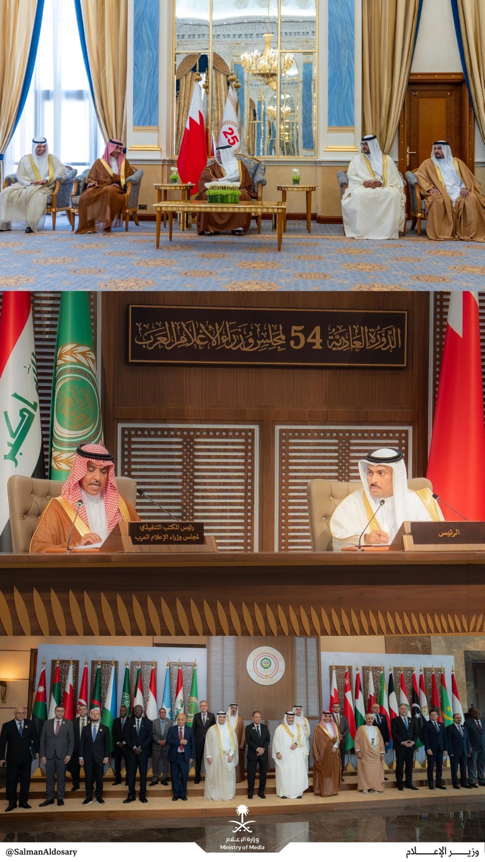 وقال “الدوسري”، في تغريدة عبر حسابه على منصة إكس: “تشرفت اليوم بلقاء سمو ولي عهد مملكة البحرين، وشاركت في اجتماع مجلس وزراء الإعلام العرب، وأكدت على وجوب تعزيز العمل الإعلامي المشترك لرفع مستوى الوعي الدولي بالجهود العربية لوقف العدوان الإسرائيلي على غزة.