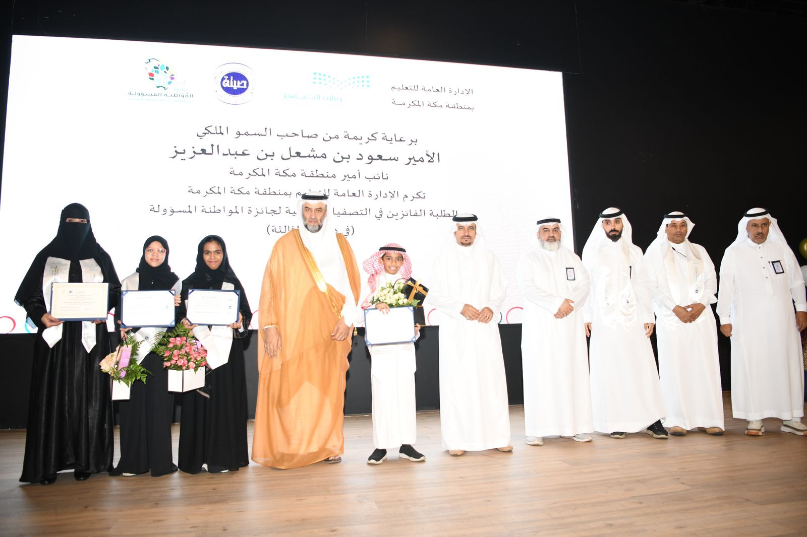 برعاية سمو نائب أمير منطقة مكة المكرمة، الأمير سعود بن مشعل بن عبدالعزيز ، كرم مدير عام التعليم بمنطقة مكة المكرمة الاستاذ عبدالله الغنام ،الطلبة الفائزين في التصفيات الأولية لجائزة الأميرة صيته بنت عبدالعزيز في دورتها الثالثة.