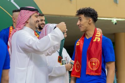 توج صاحب السمو الأمير فهد بن جلوي نائب رئيس اللجنة الأولمبية والبارالمبية نادي القادسية بطلًا لكأس السوبر السعودي ،ودرع عام بطولات كرة الماء للموسم الرياضي 2023-2024م عقب فوزه مساء أمس على نظيره الاتحاد بنتيجة 12-8 في اللقاء الذي جمعهما على مسابح وزارة الرياضة بالرياض ، بحضور رئيس الاتحاد السعودي للخماسي الحديث الأستاذ ناصر الدغيثر ،والمدير التنفيذي للاتحاد السعودي للسباحة الدكتور قاسم الزهير.