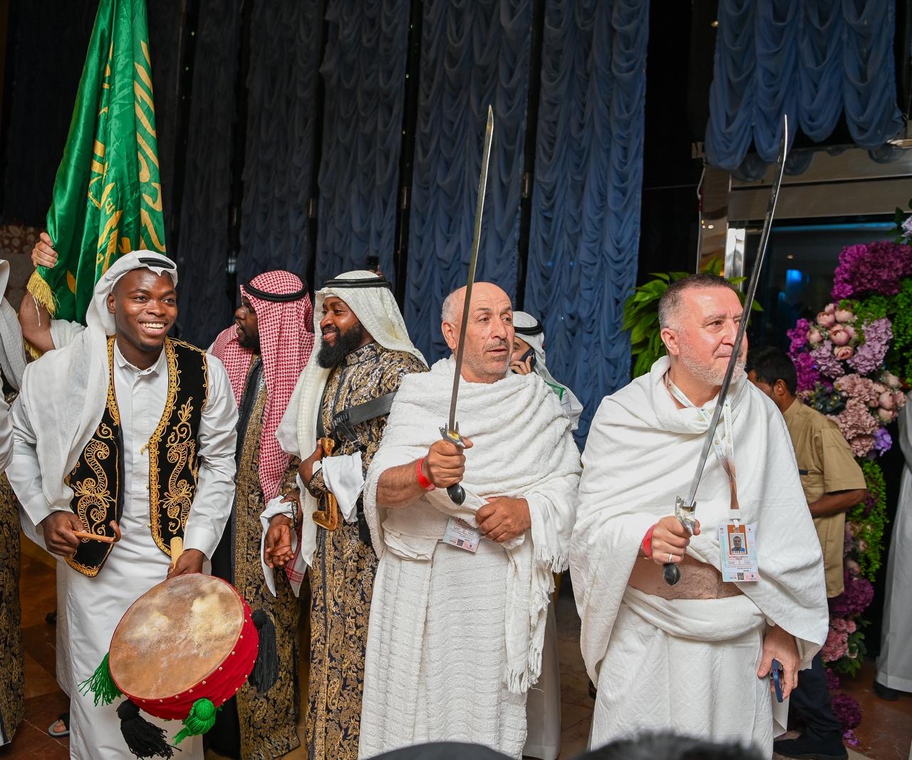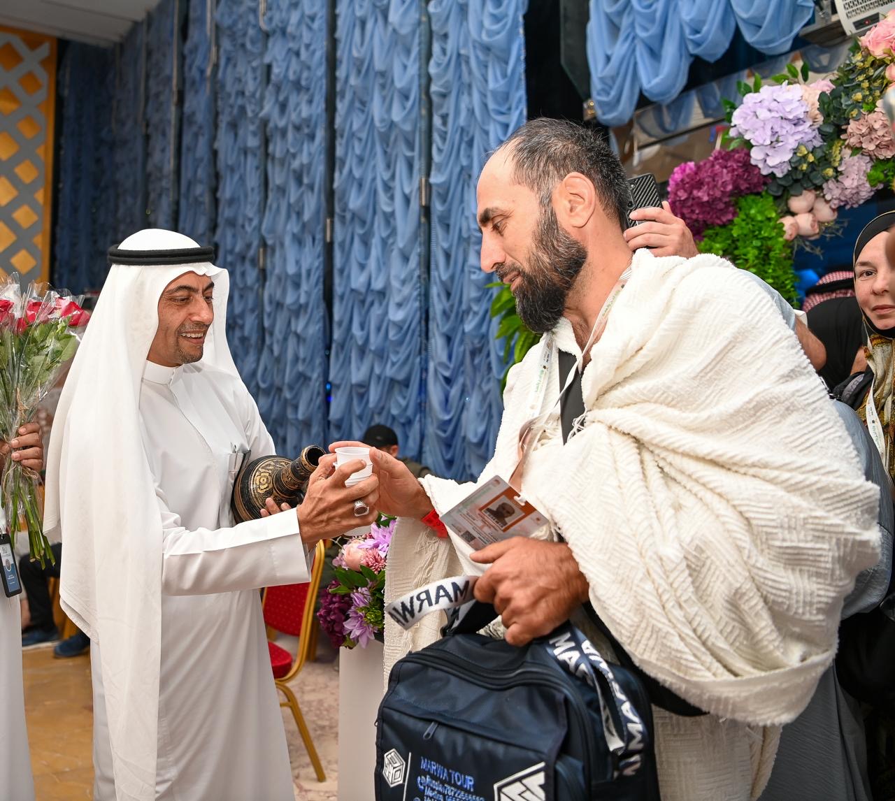 واستقبلت شركة مطوفي حجاج الدول العربية (أشرقت) ممثلةً بذراها (رحلات ومنافع) بالعرضة السعودية وتقديم ماء زمزم والتمر والقهوة والورد والهدايا.