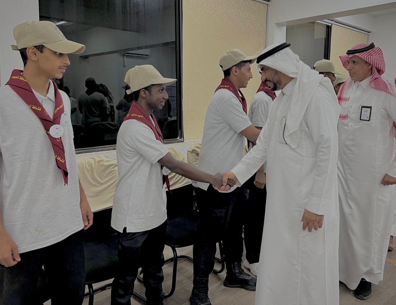 كما حث “مدير التعليم” الطلاب المشاركين في موسم حج هذا العام إلى بذل الجهد والتمثيل الأمثل للكشاف السعودي، لخدمة ضيوف الرحمن وقاصدي بيت الله الحرام مؤكداً أن هذه المشاركات تحظى بدعم وتوجيهات القيادة الرشيدة, ومتابعة مباشرة من وزير التعليم، داعياً الله لهم بأن تكلل جهودهم ومشاركتهم بالتوفيق.
