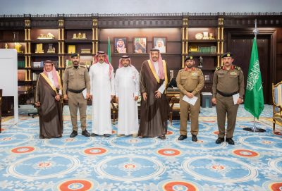 جاء ذلك خلال استقبال سموه اليوم مدير شرطة المنطقة اللواء سالم بن هياف القرقاح وعدد من منسوبي القطاعات الأمنية بالمنطقة .
