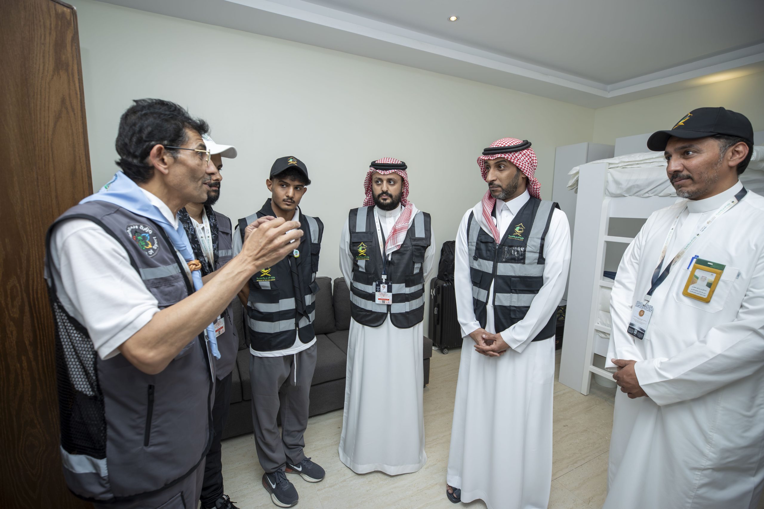تفقّد وكيل وزارة الرياضة لشؤون الرياضة والشباب، الأستاذ عبدالعزيز المسعد، اليوم، مركز المتابعة والمراقبة الميدانية لحركة الحشود والتفويج في حج هذا العام 1445هـ، والذي تقيمه وزارة الرياضة، بالشراكة مع وزارة الحج والعمرة، في مشعر منى بمكة المكرمة، وذلك بحضور مدير فرع وزارة الرياضة بمنطقة مكة المكرمة والمشرف العام على برنامج تفويج الحجاج الأستاذ عبدالعزيز بن عبود، وأعضاء الهيئة الإدارية والقادة الكشفيين بالمركز.