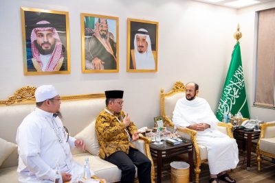 استقبل معالي وزير الشؤون الإسلامية والدعوة والإرشاد رئيس اللجنة العليا لأعمال الوزارة بالحج والعمرة والزيارة الشيخ الدكتور عبداللطيف بن عبدالعزيز آل الشيخ في مكتبه بمقر الوزارة بمشعر منى، اليوم السابع من شهر ذي الحجة لعام 1445هـ، المدير العام للشؤون الإسلامية بوزارة الشؤون الدينية ورئيس هيئة الأوقاف الدكتور قمر الزمان المستضاف ضمن برنامج ضيوف خادم الحرمين الشريفين للحج والعمرة والزيارة الذي تنظمه وزارة الشؤون الإسلامية والدعوة والإرشاد.