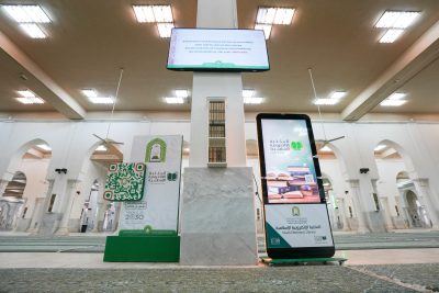 كما تقدم الوزارة خدمة “الواي فاي” لضيوف الرحمن بالمسجد لتمكينهم من الاستفادة من منصاتها الرقمية حيث تتيح الخدمة لهم خلال تواجدهم بمسجد نمرة تصفح خدمات الوزارة الإلكترونية للحجاج وتحميلها على الأجهزة الذكية من خلال “الواي فاي” بدون الحاجة إلى الإنترنت وبسرعة عالية، وأيضا تم توفير شاشات المكتبة الإسلامية الإلكترونية التي تحوي كتباً إلكترونية عن صفة الحج والعمرة وآداب الزيارة، لتحميلها على الأجهزة الذكية بلغات عالمية مختلفة يستطيع الزائر تحميلها عبر تقنية رمز الاستجابة السريع QRcode .