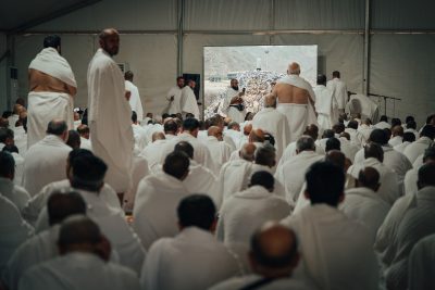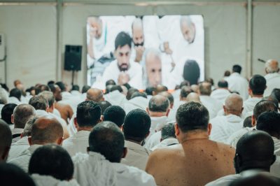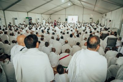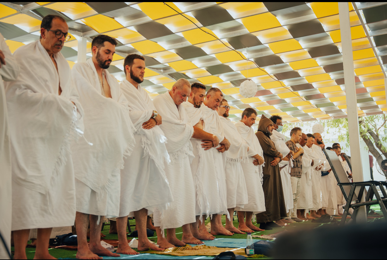 ثم أدى ضيوف خادم الحرمين الشريفين صلاتي الظهر والعصر جمعا وقصرا في مخيمهم، بعد أن استمعوا إلى الخطبة وسط أجواء من الطمأنينة والسكينة، والخدمات المتكاملة وذلك في مقر المصلى للرجال، كما تم نقل الخطبة للنساء في مقر مصلاهن.