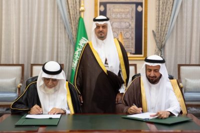 ووقع محاضر التسليم معالي وزير الحج والعمرة رئيس مجلس إدارة الهيئة العامة للعناية بشؤون المسجد الحرام والمسجد النبوي الدكتور توفيق بن فوزان الربيعة، ونائب كبير سدنة بيت الله الحرام عبدالملك بن طه الشيبي.