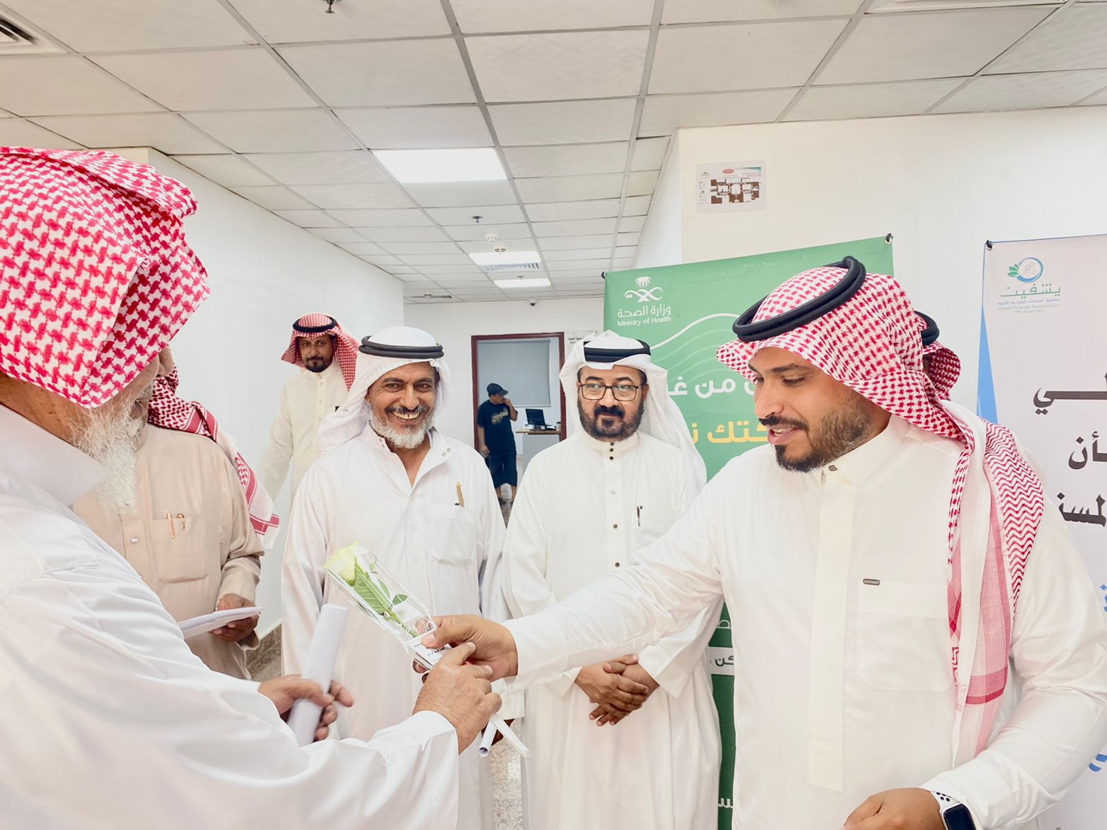 كما تمت زيارة المرضى المنومين في أقسام التنويم الداخلية والطوارئ ومركز غسيل الكلى وتقديم لهم باقات الورد بهذه المناسبة وتقديرُا لمكانتهم الاجتماعية .