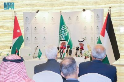 وأعلن الدكتور عبدالله الربيعة عن توقيع اتفاقية تعاون مشترك بين مركز الملك سلمان للإغاثة وبرنامج الأغذية العالمي؛ لتنفيذ المرحلة الرابعة لدعم الأمن الغذائي للاجئين السوريين في مخيمات اللجوء بالأردن بمبلغ 12,800.000 دولار أمريكي؛ حيث إن هذه المرحلة سيستفيد منها شهريًّا 50 ألف فرد يشكلون 65% من سكان مخيم الزعتري، وكذلك توقيع مشروع علاج مرضى السرطان من الأشقاء الفلسطينيين في قطاع غزة، بالشراكة مع مركز الحسين للسرطان بمبلغ 3.615.800 دولار أمريكي؛ ليستفيد منه 150 مريضًا، وتوقيع مشروع رعاية الأيتام السوريين والأردنيين بالشراكة مع الهيئة الخيرية الأردنية الهاشمية بمبلغ 1.304.591 دولارًا أمريكيًّا؛ ليستفيد منه 1.000 يتيم ويتيمة في جميع المناطق الأردنية، وتوقيع اتفاقية إطارية لتنفيذ مشاريع طبية تطوعية لزراعة القوقعة والتأهيل السمعي، ومشاريع تخصصية أخرى للمرضى الفلسطينيين، بالشراكة مع مستشفى الاستقلال، ليتجاوز إجمالي ما تم تقديمه من المملكة لفلسطين وللأشقاء الفلسطينيين والدول المستضيفة للاجئين منهم؛ أكثر من 5.3 مليارات دولار أمريكي خلال السنوات الماضية؛ منها ما يقارب 480 مليون دولار أمريكي قدمت من خلال مركز الملك سلمان للإغاثة، منوهًا معاليه إلى تسيير المملكة جسرين إغاثيين مكونين من 54 طائرة إغاثية، و8 سفن إغاثية، بالإضافة إلى إطلاق حملة التبرعات الشعبية عقب اندلاع الأزمة في غزة، التي جمعت مبالغ مالية تتجاوز 184 مليون دولار أمريكي.
