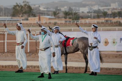 وتضمن سباق اليوم الأول حفل خطابي وفلكور شعبي العرضة الجنوبية وقصائد شعرية فيما تم إطلاق عدد من البالونات وتوزيع عدد من الجوائز وسط حضور يزيد على 500 شخص من محبي وهواة وملاك الخيل .