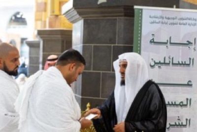 عبدالله الذويبي – فعلت رئاسة الشؤون الدينية بالمسجد الحرام والمسجد النبوي دور إدارة إجابة السائلين؛ مواكبة مع خطة موسم العمرة، وتوافد المعتمرين والزائرين؛ لحاجتهم في معرفة إجابة ما يشكل عليهم من أمر عباداتهم ومناسكهم التي يمّموا لها شطر المسجد الحرام؛ ليؤدوها وفق المقتضى الشرعي؛ وأطلقت الرئاسة مبادرة “فَاسْألُوا أهلَ الذِّكر”؛ لإيصال هدايات الحرمين لجميع قاصديه وزائريه، وإثرائهم من خلال إيضاح المسائل الشرعية وبيان أحكام المناسك المستشكلة، وبذل كل ما من شأنه راحة المعتمرين، وتقديم أرقى الخِدمات الدينية المعيارية.