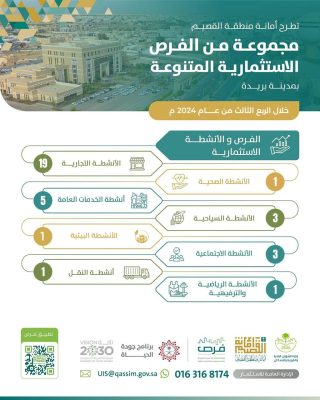 طرحت أمانة منطقة القصيم ممثلة بالإدارة العامة للاستثمارات 34 فرصة استثمارية أمام القطاع الخاص في مدينة بريدة، وذلك خلال الربع الثالث لعام 2024م، عبر بوابة الاستثمار في المدن السعودية “فرص” في مختلف المجالات التجارية، والصحية، والسياحية والاجتماعية، والخدمات العامة، وغيرها من الفرص الاستثمارية المتنوعة التي تسهم في الحركة التنموية ورفع مستوى الخدمات وتحسين جودة الحياة وتعزيز الاستثمار بالمنطقة ، داعيةً المستثمرين الراغبين في التنافس الاطلاع على الفرص، وتفاصيل المنافسة من خلال تطبيق الاستثمار البلدي (فرص)