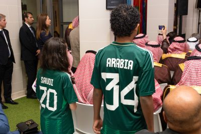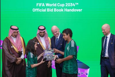 سلم وزير الرياضة في المملكة العربية السعودية الأمير عبد العزيز بن تركي الفيصل، ورئيس الاتحاد السعودي لكرة القدم (SAFF) ياسر المسحل، ورئيس الوحدة الخاصة بملف الترشح لدى الاتحاد السعودي حماد البلوي، عروض الاستضافة لكأس العالم FIFA 2034.