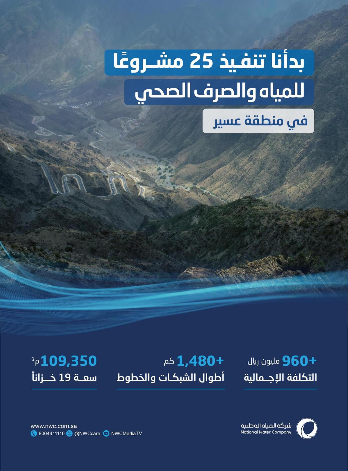 المياه الوطنية تبدأ تنفيذ 25 مشروعًا مائيًا وبيئيًا في منطقة عسير بأكثر من 960 مليون ريال