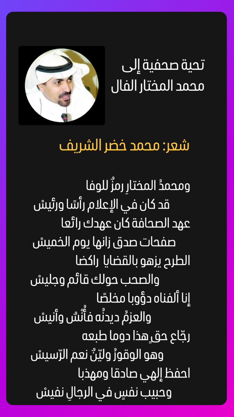 الشاعر محمد خضر الشريف، يبعث تحية صحفية إلى محمد المختار الفال